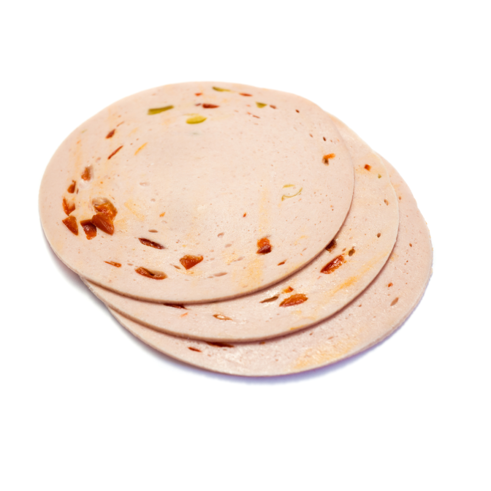 Hähnchenfleisch 80 %, Pflanzenfett (Rapsöl), Trinkwasser, Gewürze, Nitritpökelsalz (Speisesalz u. Konservierungsstoffe E250, E500, E535), Phosphat E451, Antioxidationsmittel E301, Geschmacksverstärker E621, Paprika. Allergene: Sellerie.